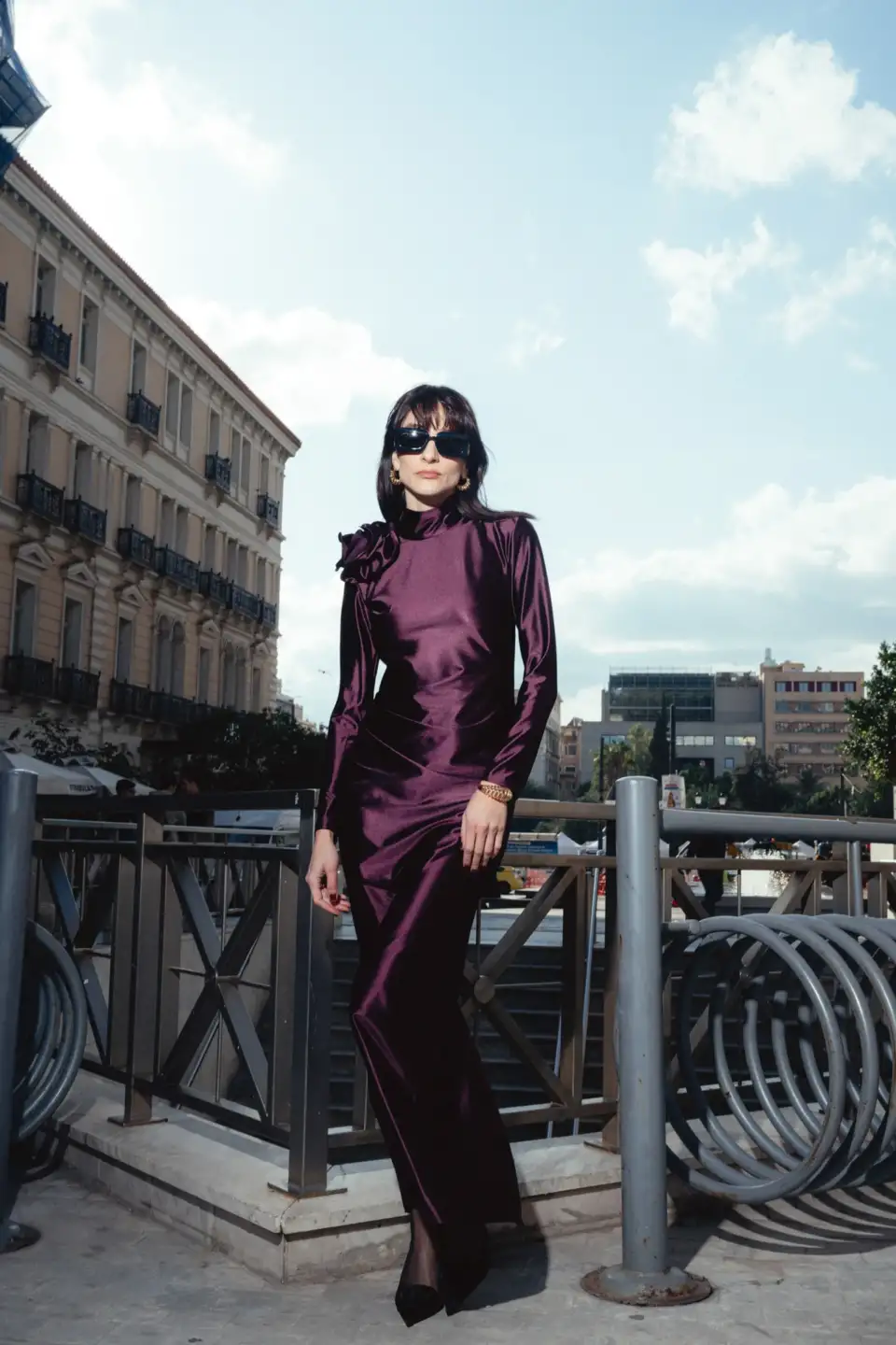A longsleeve maxi gown designed with a draping detail on the waist and a high neck collar. Fastening with an invisible zipper and our signature Rose Button on the back neck. Adorned with a hanmade 3D Appliqué Flower on the right shoulder for a statement DES look.